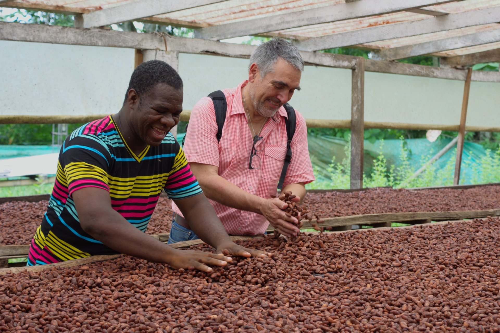 In den Kakaogärten wollen wir stolze und glückliche Gesichter sehen. Insekten summen hören. Ein guter Preis für den Kakao wertschätzt die Arbeit der Kleinbauern und bewahrt ihren Lebensraum.